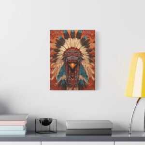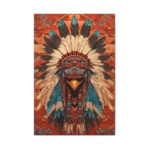 Laissez-vous envoûter par cette œuvre majestueuse où les plumes d’aigle cascadent avec grâce sur un fond aux motifs tribaux envoûtants. Les teintes terracotta et turquoise s’entremêlent dans une harmonie chromatique évoquant les couchers de soleil du désert.