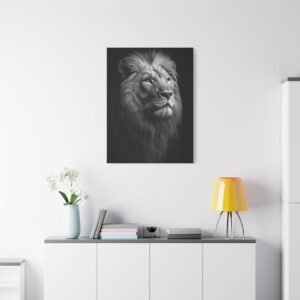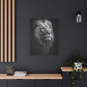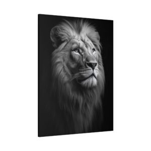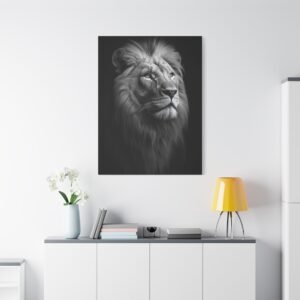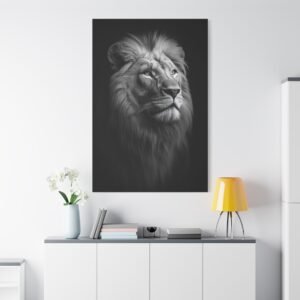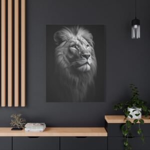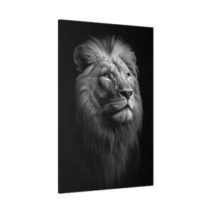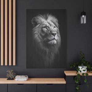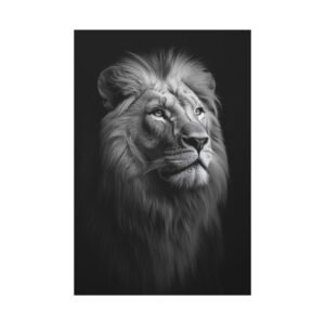 Imaginez un portrait majestueux, où chaque détail du pelage est rendu avec une précision exceptionnelle. Les yeux perçants du lion semblent vous suivre, créant une connexion intense avec l’observateur. Le contraste saisissant entre le noir profond et le blanc éclatant ajoute une dimension dramatique à cette composition, parfaite pour un intérieur contemporain ou classique. 😍