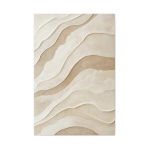 Cette œuvre minimaliste capture l’essence de l’expressionnisme abstrait moderne avec ses tourbillons crémeux et ses vagues texturées couleur ivoire. Les subtiles nuances de sable apportent une profondeur raffinée à la composition, évoquant un sentiment de calme et d’harmonie.