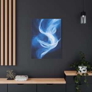 Cette œuvre contemporaine apporte une touche de raffinement aquatique à votre espace. Parfaite pour un salon moderne, une chambre zen ou un espace de travail créatif, la fluidité des motifs et les textures dynamiques insufflent vie et mouvement à votre décoration. Les contrastes saisissants entre le bleu océan et le blanc immaculé créent une profondeur fascinante.