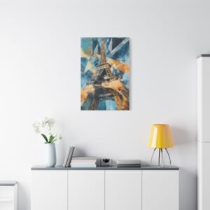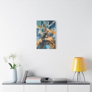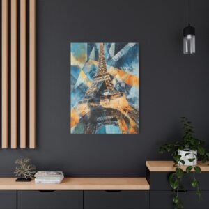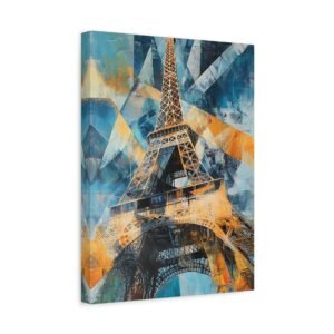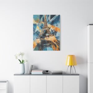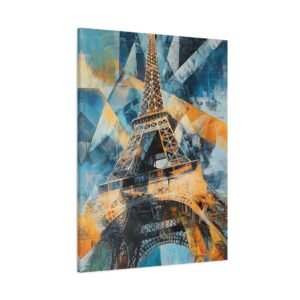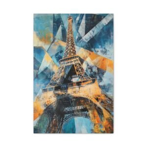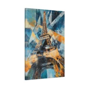 Plongez dans une interprétation contemporaine audacieuse de la Tour Eiffel où formes géométriques et triangles superposés se mêlent dans une danse artistique captivante. Les coups de pinceau dynamiques et les lignes entrelacées créent une composition vibrante qui réinvente le monument emblématique.