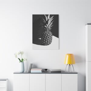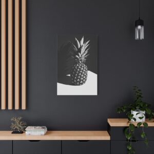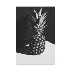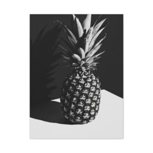 Découvrez la puissance du contraste avec cette illustration minimaliste qui réinvente l’ananas dans une palette monochrome saisissante. Les ombres dramatiques et les motifs géométriques créent une composition contemporaine qui transcende l’image traditionnelle du fruit tropical.