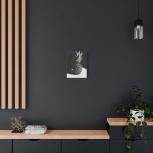 La texture détaillée et les lignes épurées transforment ce sujet exotique en une œuvre d’art moderne. L’éclairage studio met en valeur chaque facette de l’ananas, créant un jeu d’ombres et de lumières qui apporte profondeur et caractère à cette composition zen.