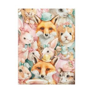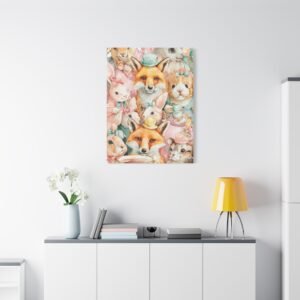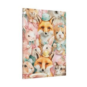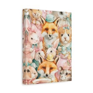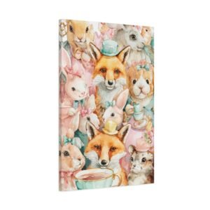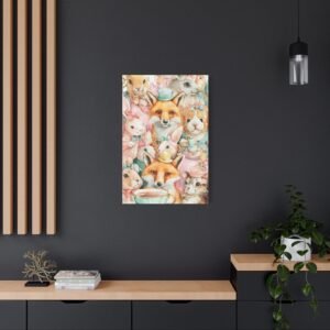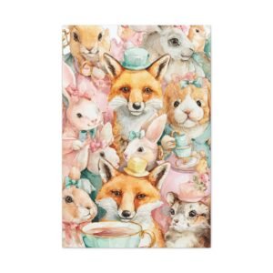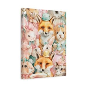 Découvrez notre Tableau Aquarelle Amusante, une illustration aquarelle ludique d’animaux joyeux participant à une fête de thé. Des lapins et des renards colorés portant de minuscules chapeaux sont représentés en couleurs pastel douces telles que le rose, le jaune et le vert menthe. Les coups de pinceau aquarelle libres présentent des imperfections charmantes, ajoutant à l’émerveillement enfantin de l’œuvre. Cette composition joyeuse et légère apportera une touche de gaieté à n’importe quelle pièce.