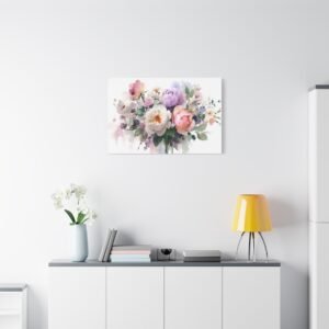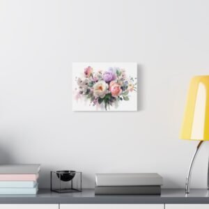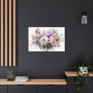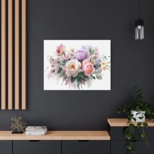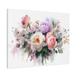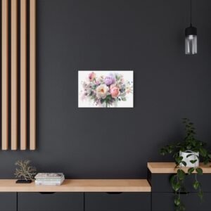 Sublimez votre intérieur avec ce magnifique Tableau Aquarelle Bouquet de Fleurs. Cette œuvre d’art dépeint un bouquet de fleurs magnifiquement arrangé dans un style aquarelle. Les roses, les pivoines et les fleurs sauvages se mélangent dans des couleurs pastel douces de rose, de violet et de blanc. Les tiges et les feuilles délicates en vert doux ajoutent une touche de fraîcheur et de naturel. Le doux écoulement des pigments et les effets de transparence apportent une touche de romantisme à cette composition florale.