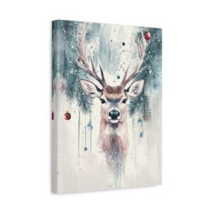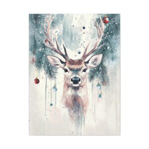 Plongez dans la magie des fêtes avec cette aquarelle envoûtante d’un cerf majestueux. Délicatement peint dans des tons festifs, ce tableau marie la noblesse de l’animal aux ornements de Noël traditionnels et aux guirlandes de pin, créant une atmosphère féerique.