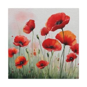 Imprégnez-vous de l’ambiance d’une prairie de campagne romantique avec ce Tableau Aquarelle Coquelicots. Les coquelicots rouges, vibrants et écarlates, se balancent doucement dans la brise. Leurs pétales délicats avec des centres noirs contrastent magnifiquement avec les tiges et les feuilles vertes douces. Les tons vifs de rouge et d’orange se mélangent grâce à l’effet de diffusion de l’aquarelle, ajoutant une sensation de mouvement et de vie à la scène. Ce tableau apportera une touche de nature et de couleur à n’importe quel espace.