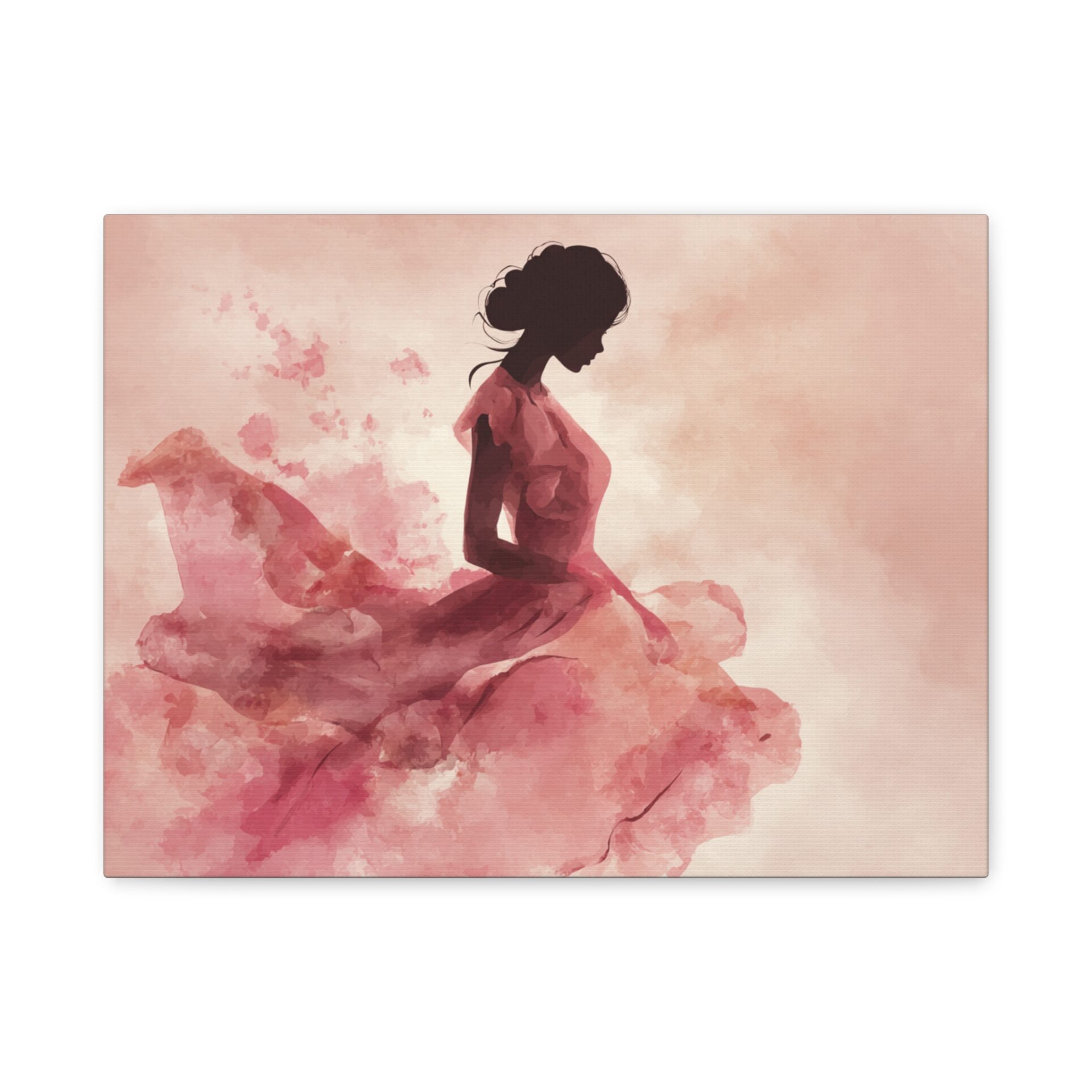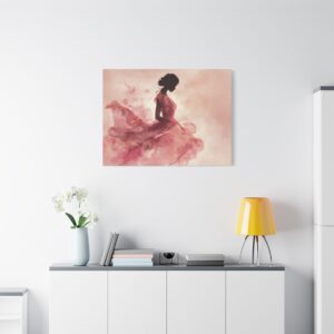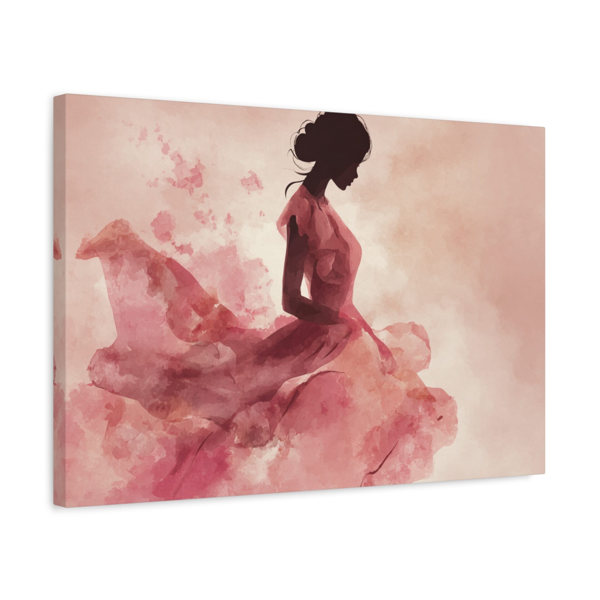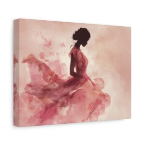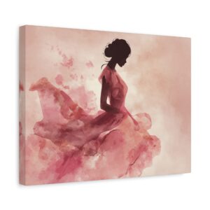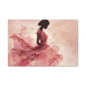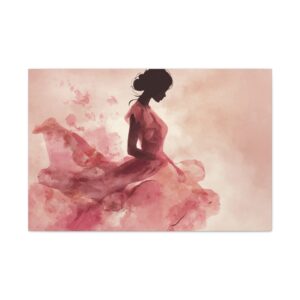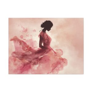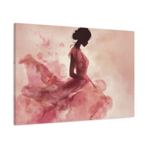 Sublimez votre intérieur avec ce Tableau Aquarelle Femme Rose. Une femme gracieuse se dessine en douces teintes de rose, dans un style aquarelle des plus élégants. Sa silhouette féminine, drapée d’une robe fluide rose, est mise en valeur par des coups de pinceau délicats aux nuances de blush et de corail. La composition romantique est accentuée par de doux effets de diffusion de l’aquarelle, créant une atmosphère rêveuse sur un fond aux tons de rose doré. Une véritable ode à la beauté féminine sophistiquée.
