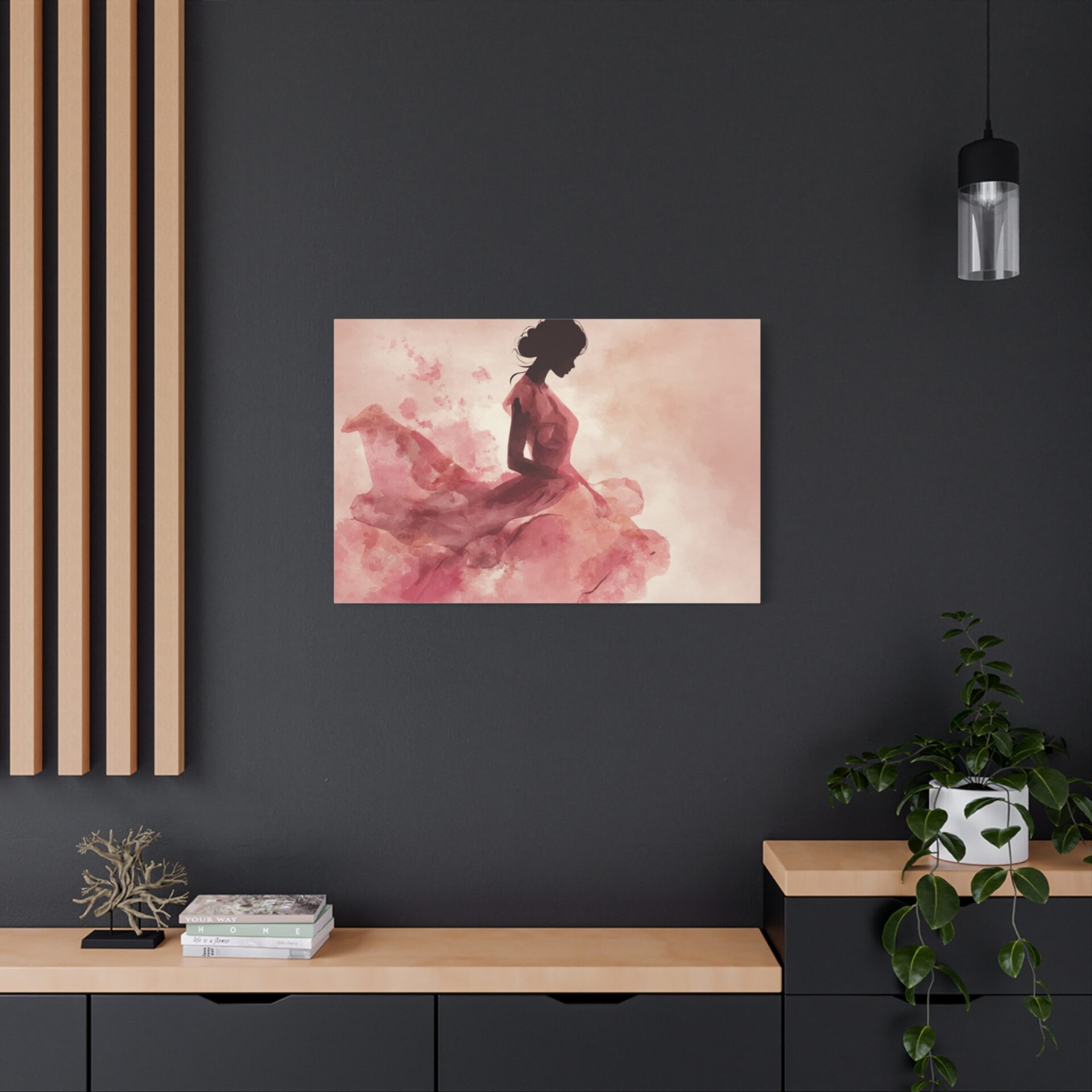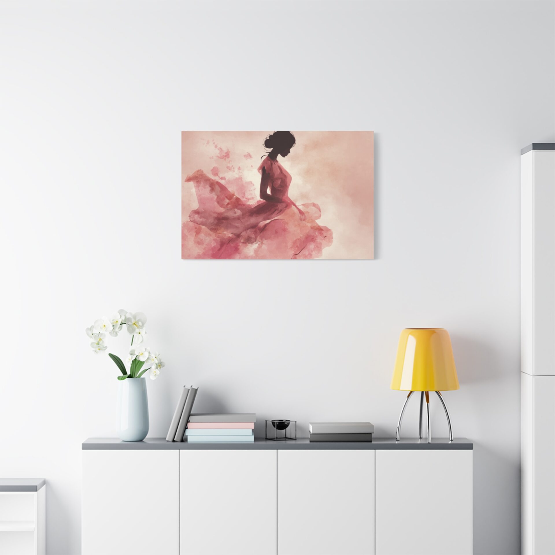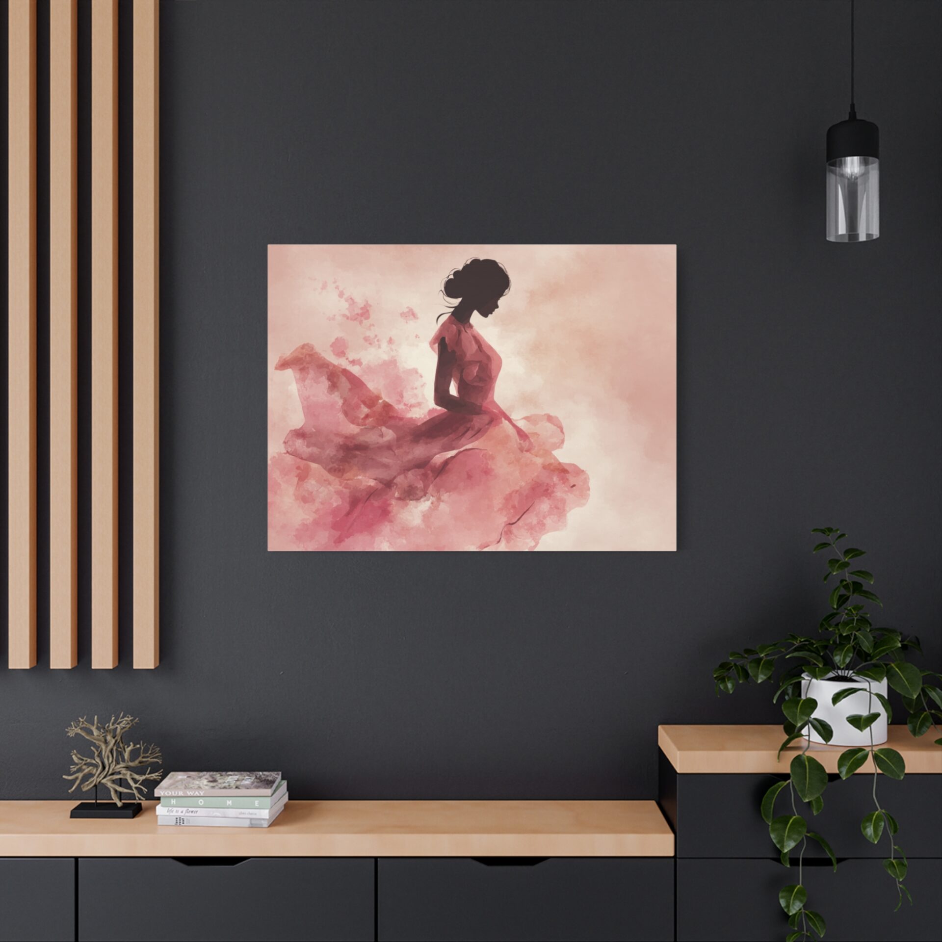 Sublimez votre intérieur avec ce Tableau Aquarelle Femme Rose. Une femme gracieuse se dessine en douces teintes de rose, dans un style aquarelle des plus élégants. Sa silhouette féminine, drapée d’une robe fluide rose, est mise en valeur par des coups de pinceau délicats aux nuances de blush et de corail. La composition romantique est accentuée par de doux effets de diffusion de l’aquarelle, créant une atmosphère rêveuse sur un fond aux tons de rose doré. Une véritable ode à la beauté féminine sophistiquée.
