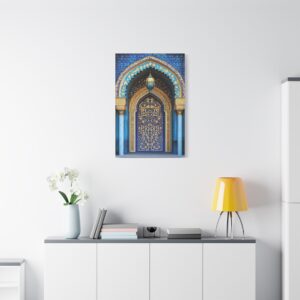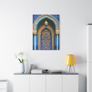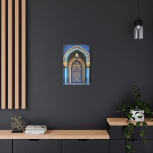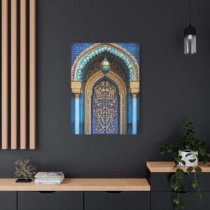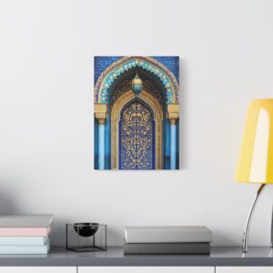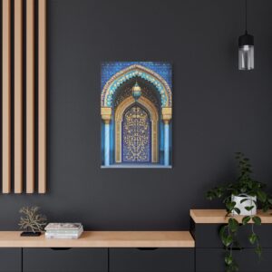 Plongez dans l’univers envoûtant de l’art islamique avec cette œuvre contemporaine majestueuse. Les arabesques géométriques s’entrelacent avec grâce, créant un spectacle visuel hypnotique encadré par une arche traditionnelle.