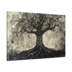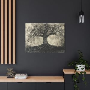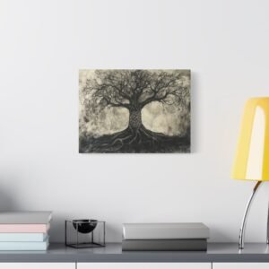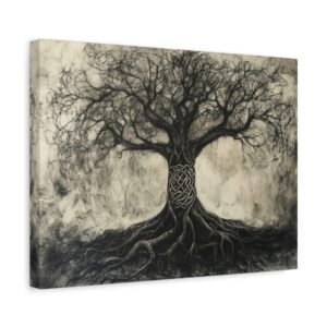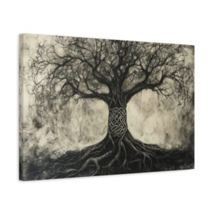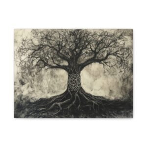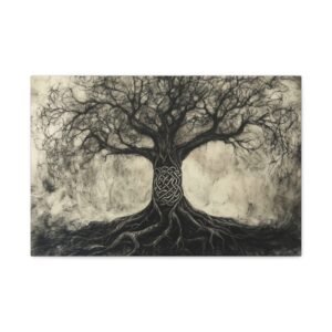 Découvrez la puissance évocatrice de cet arbre de vie majestueux réalisé au fusain. Les branches entrelacées dessinent d’fascinants motifs celtiques, tandis que les racines s’étendent comme les veines de la terre, créant une symbolique profonde et universelle.
