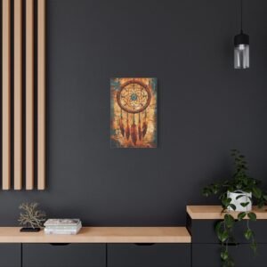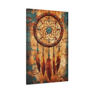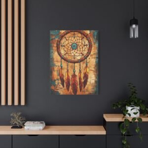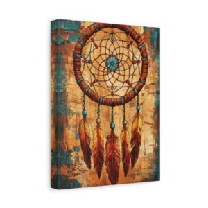 Plongez dans l’univers mystique des traditions amérindiennes avec ce tableau captivant. Les motifs géométriques sacrés s’entrelacent harmonieusement avec les symboles d’animaux totems, créant une ambiance spirituelle unique dans votre intérieur. La palette de couleurs terracotta et turquoise évoque la chaleur du désert du Sud-Ouest américain.