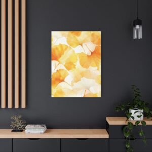 Découvrez la délicatesse poétique des feuilles de Ginkgo dans cette composition contemporaine épurée. L’aquarelle aux tons dorés automnaux se déploie avec grâce sur un fond blanc immaculé, créant une atmosphère zen et apaisante.