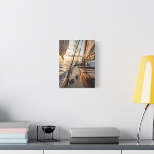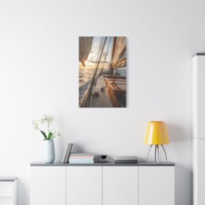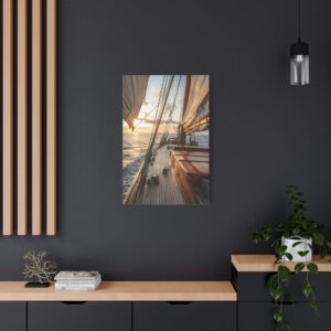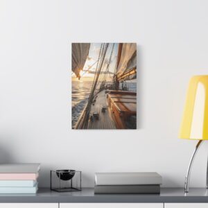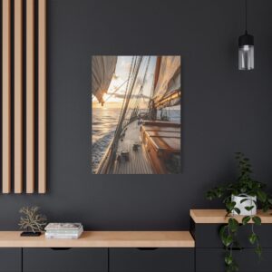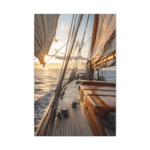 Ce tableau maritime s’intègre parfaitement dans un salon contemporain ou une chambre aux tons chauds. Pour maximiser son impact visuel, privilégiez un mur de couleur neutre et un éclairage doux qui mettra en valeur les nuances dorées du coucher de soleil. Les effets de lumière naturelle en font une pièce idéale pour créer une ambiance apaisante propice à la détente.