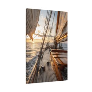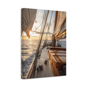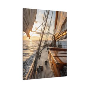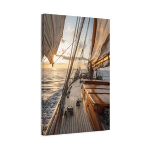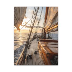 Laissez-vous transporter par cette photographie maritime spectaculaire capturant l’instant magique où le soleil embrasse l’horizon. Le voilier, majestueusement cadré dans la lumière dorée, se détache sur une mer paisible, créant une atmosphère de sérénité absolue. Les reflets subtils du soleil sur l’eau ajoutent une dimension contemplative à cette composition réaliste.