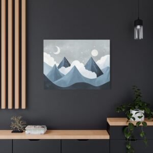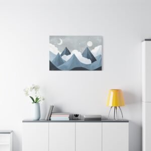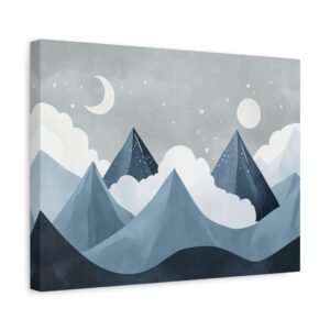 Conseil déco : Installez ce tableau au-dessus du berceau ou de la table à langer pour créer un point focal apaisant. Associez-le à des textiles doux et des accessoires en bois clair pour une ambiance nordique chaleureuse. Son design épuré s’adaptera parfaitement à l’évolution de la chambre de votre enfant.