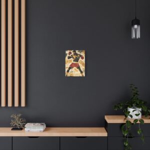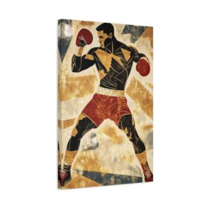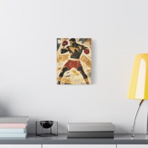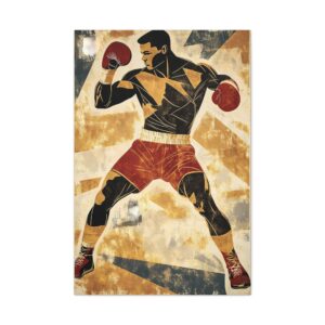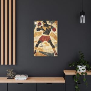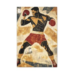 Sa composition dramatique, mettant en scène une silhouette de boxeur héroïque en position de combat, apportera une touche de caractère unique à votre espace. Les formes géométriques audacieuses et la typographie d’époque s’harmonisent parfaitement pour créer une atmosphère rétro sophistiquée.