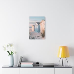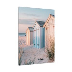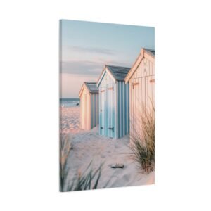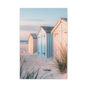 Plongez dans l’atmosphère estivale avec cette toile impressionniste vibrante capturant le charme authentique des cabines de plage. Les touches de pinceau expressives et la palette de couleurs pastel créent une ambiance balnéaire chaleureuse qui transformera instantanément votre intérieur.