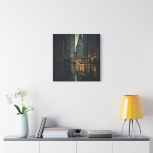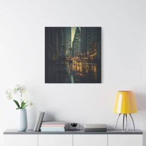 Conseil déco : Parfait pour un bureau moderne ou un espace de travail ambitieux, ce tableau insufflera dynamisme et prestige à votre intérieur. Pour un rendu optimal, privilégiez un éclairage directionnel qui mettra en valeur les reflets et textures urbaines de l’œuvre.