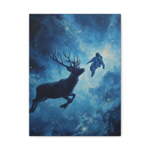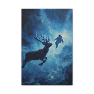 Découvrez notre Tableau Cerf & Astronaute Espace, une œuvre d’art captivante qui représente un cerf majestueux flottant gracieusement dans l’immensité de l’espace, aux côtés d’un astronaute en combinaison blanche. L’atmosphère paisible et onirique de cette toile évoque une sérénité en apesanteur. Le style de peinture à l’huile, combiné aux effets d’éclairage éthérés et aux profondes nuances de bleu de l’espace, crée un spectacle cosmique à couper le souffle.