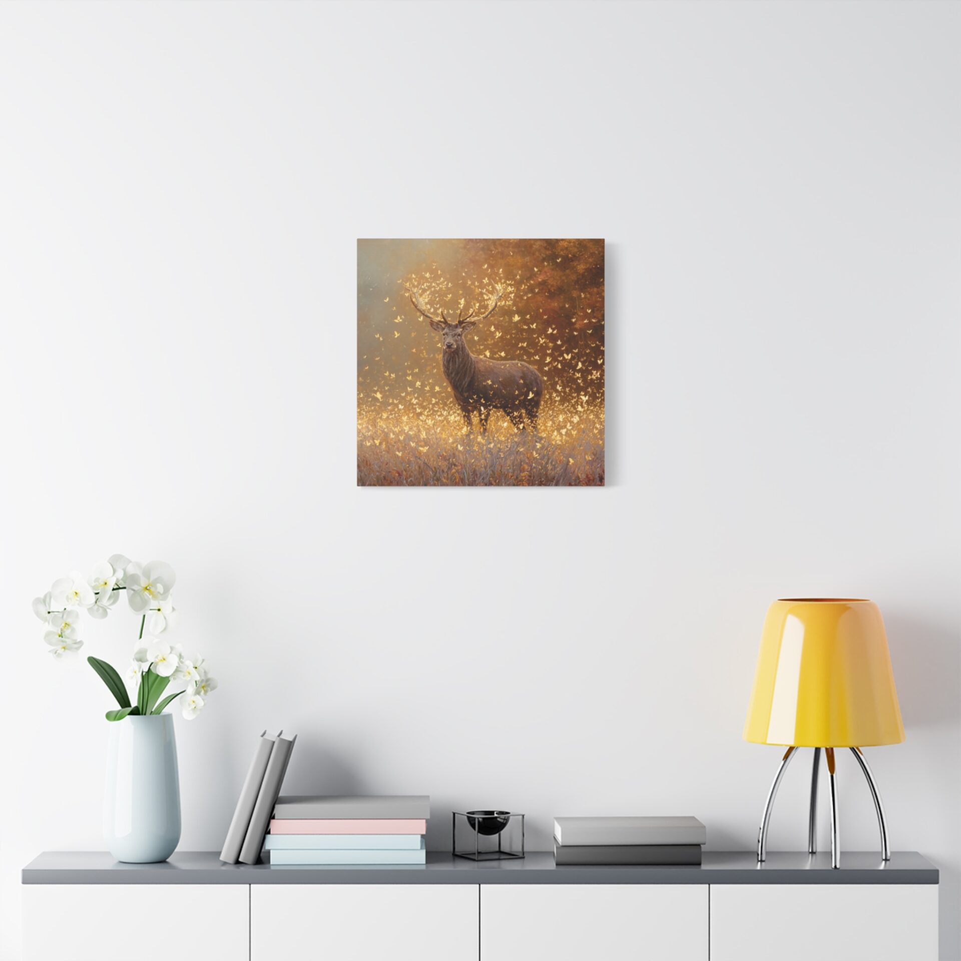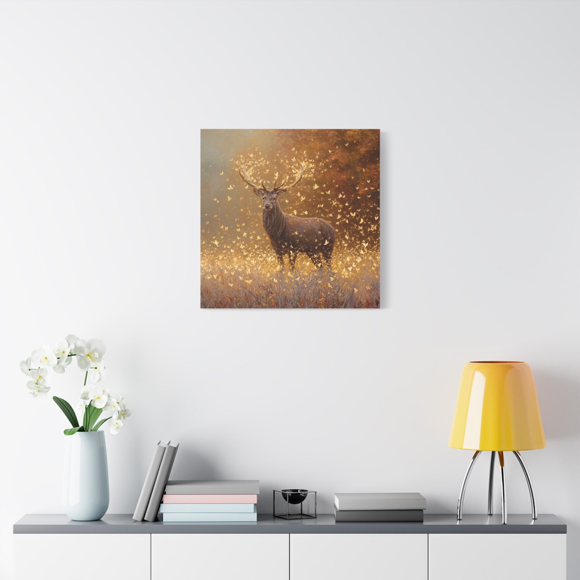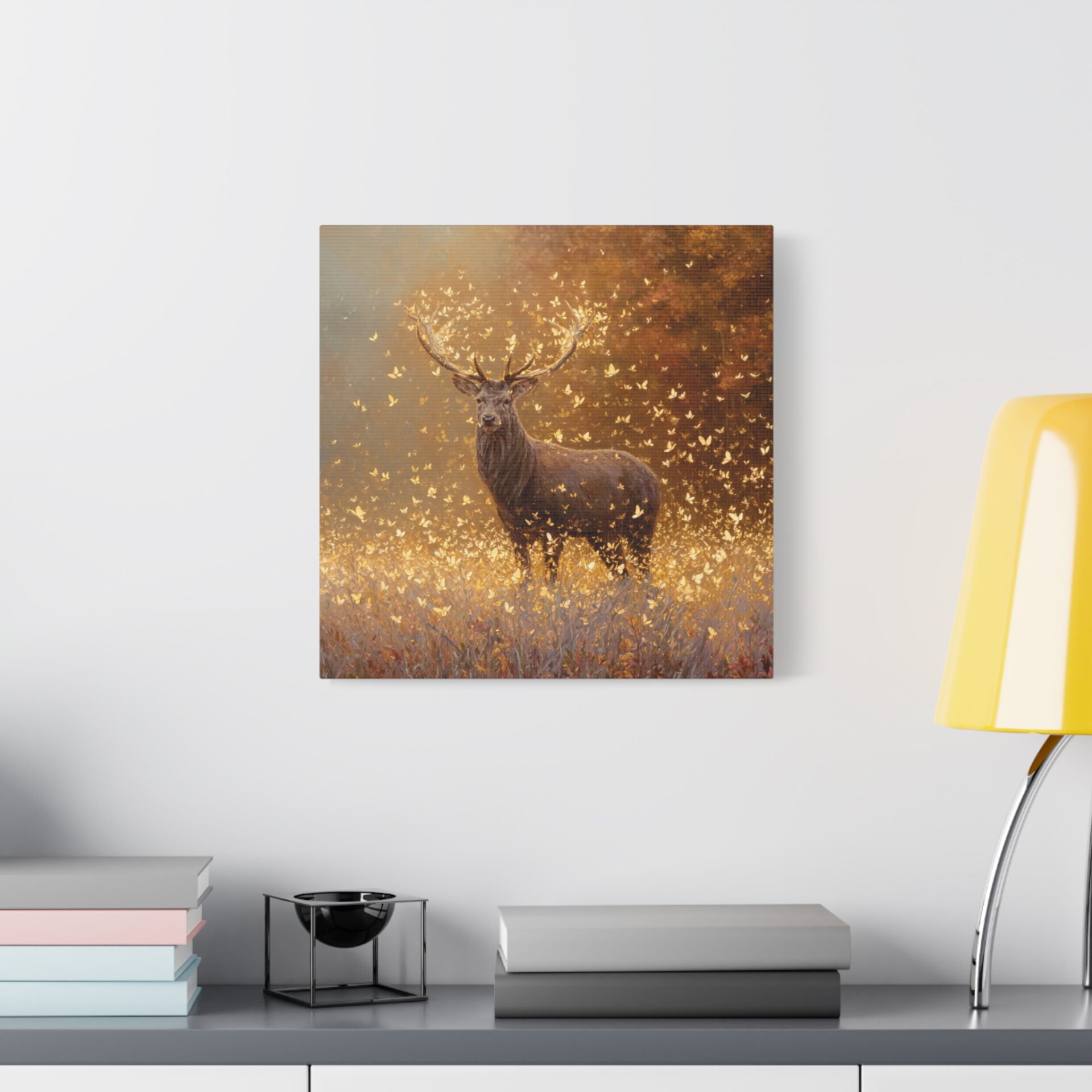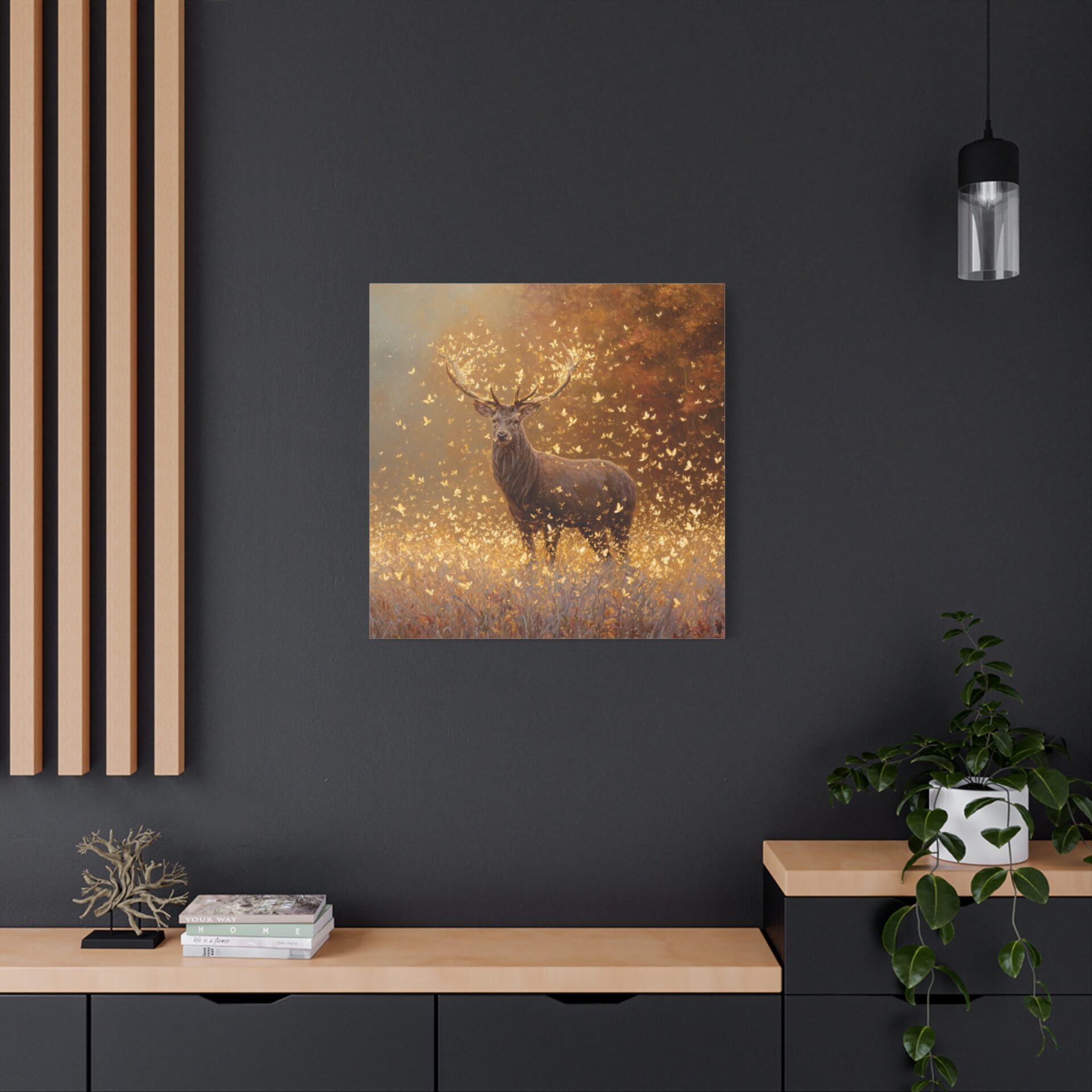 Découvrez notre Tableau Cerf & Papillons Dorés, une œuvre d’art qui capture la beauté d’un cerf noble debout dans une prairie dorée, entouré de centaines de papillons dorés scintillants. Le tableau, peint dans un style d’huile romantique classique, offre une atmosphère éthérée et enchanteuse, avec une lumière de coucher de soleil chaude qui filtre à travers la scène, créant une lueur magique. Les ailes délicates des papillons captent et reflètent l’illumination de l’heure dorée, ajoutant une touche de magie à votre espace de vie.