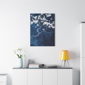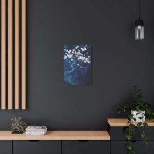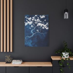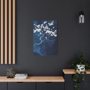Laissez-vous transporter par la magie d’un cerisier en fleurs au clair de lune avec cette œuvre captivante. Les pétales délicats, entre blanc pur et rose tendre, dansent sur un fond d’un bleu indigo profond, créant une atmosphère mystique qui transformera votre intérieur.