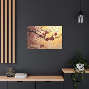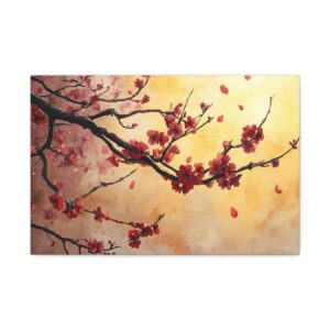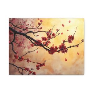 Laissez-vous envoûter par la magie du tableau cerisier japonais rouge, une œuvre somptueuse où les pétales cramoisies dansent sur fond de soleil couchant. Cette composition artistique s’inspire de la technique ancestrale du sumi-e, mêlant tradition et modernité dans un ballet floral saisissant.