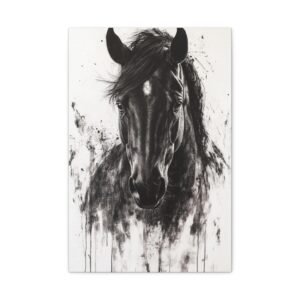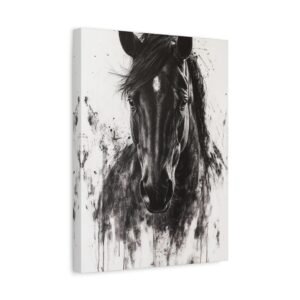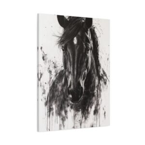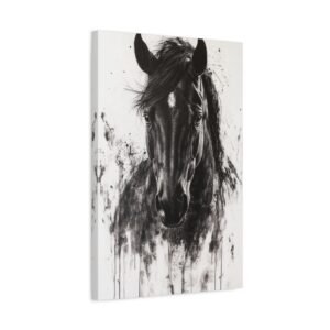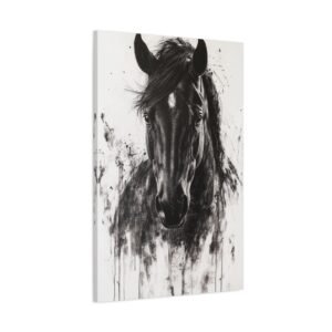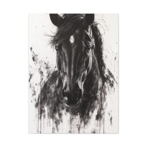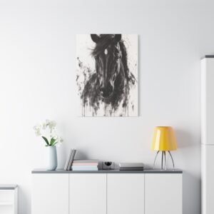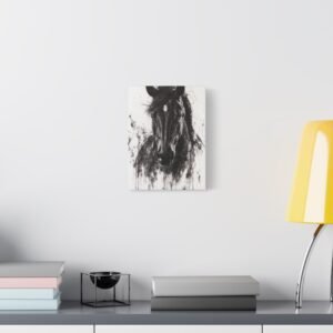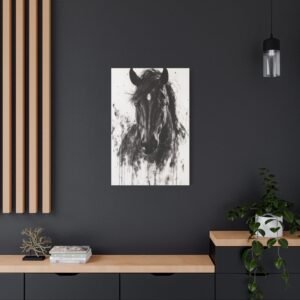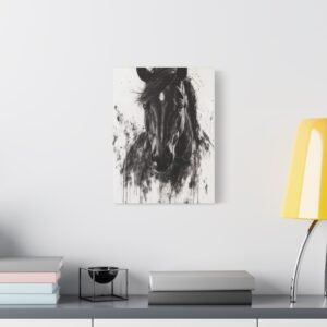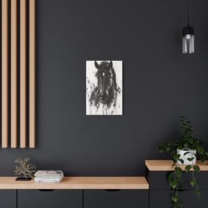 Pour magnifier ce portrait équestre, privilégiez un mur épuré et un éclairage direct qui soulignera les détails soyeux de la robe du cheval. L’association avec des éléments décoratifs aux lignes épurées sublimera la noblesse naturelle de cette composition.