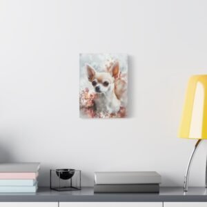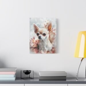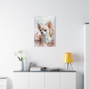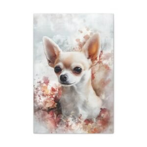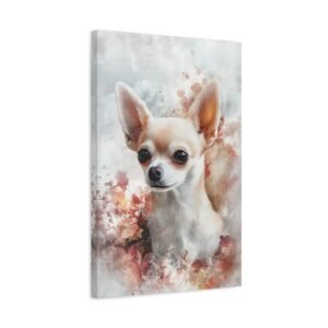 Découvrez la grâce et le charme d’un portrait de Chihuahua réalisé dans un style aquarelle enchanteur. Les tons pastels délicats et les coups de pinceau subtils capturent parfaitement l’essence de cette race miniature, mettant en valeur ses grands yeux expressifs et sa pose élégante.