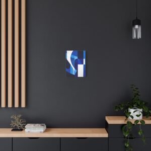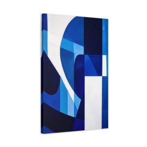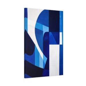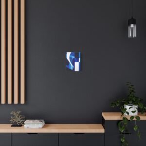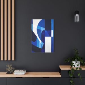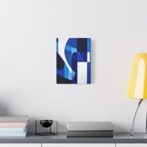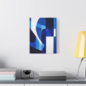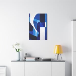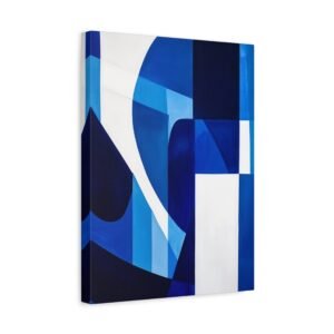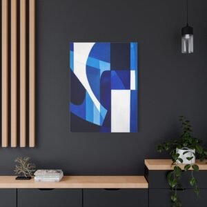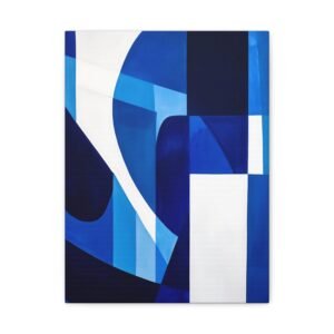 Révolutionnez votre espace avec cette œuvre contemporaine aux tons bleus saisissants. Les motifs géométriques fluides et les lignes angulaires créent une composition audacieuse qui captive instantanément le regard, transformant votre mur en une véritable galerie d’art moderne.
