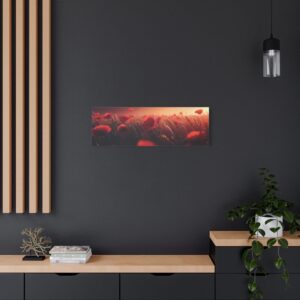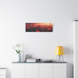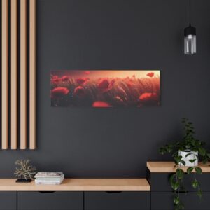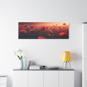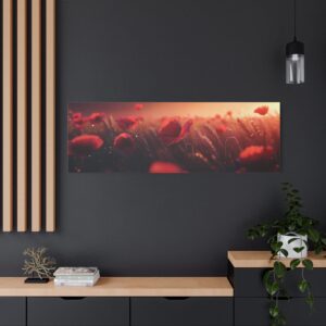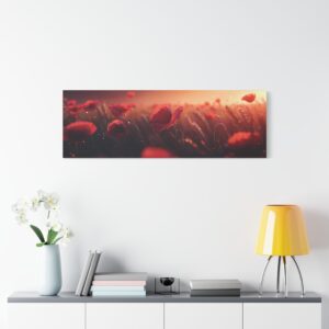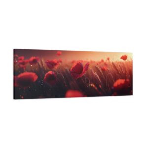 Laissez-vous transporter par la magie de ce tableau coquelicot panoramique qui capture l’essence même d’un matin d’été. L’alliance saisissante des coquelicots écarlates et des blés dorés ondulant sous la brise crée une atmosphère onirique qui transformera instantanément votre intérieur.