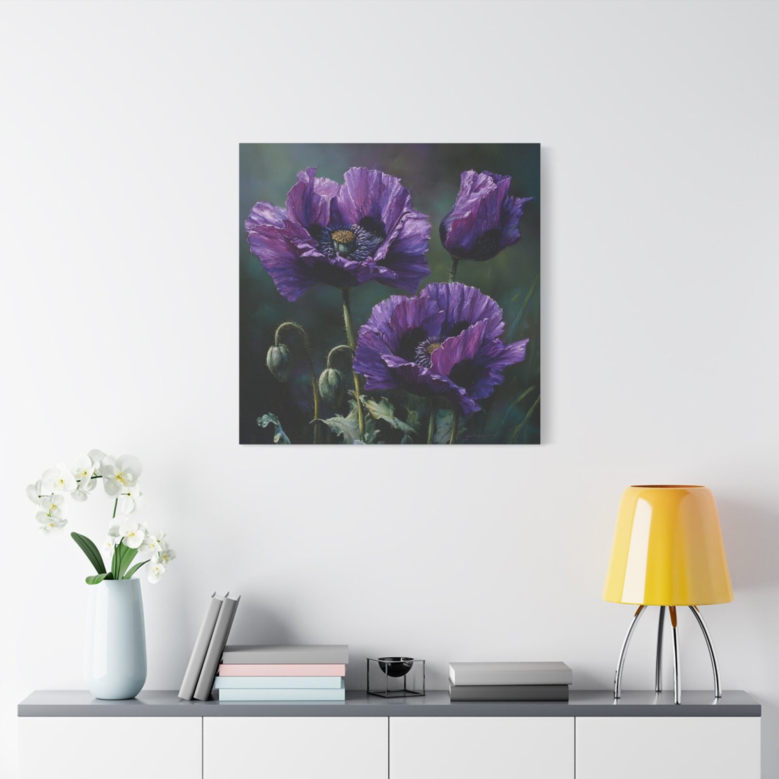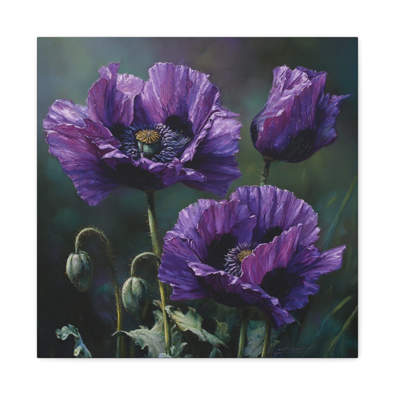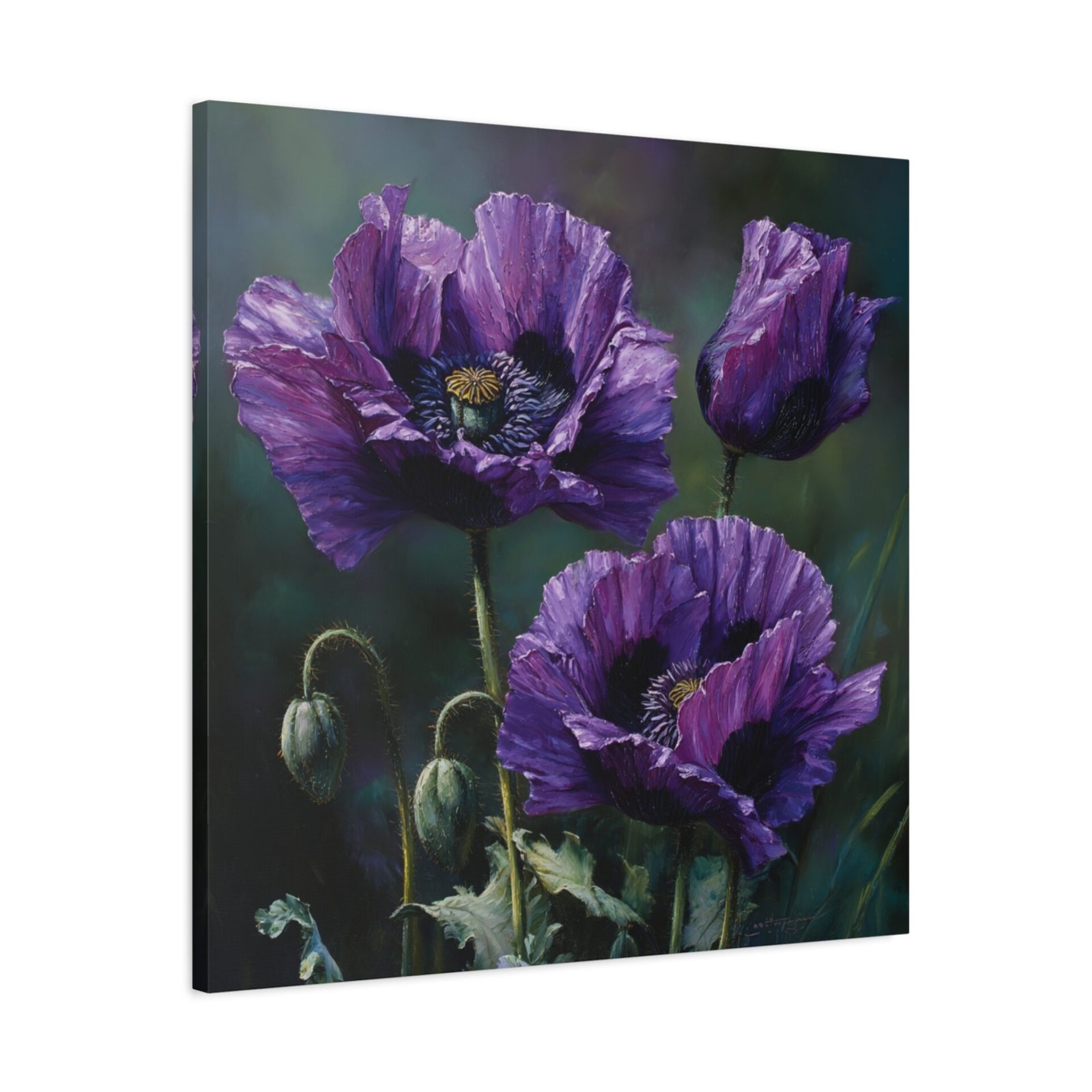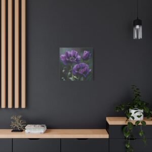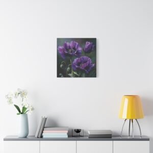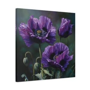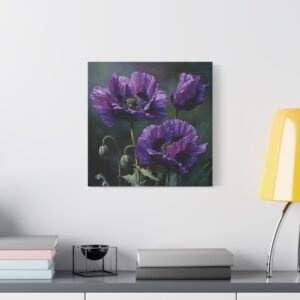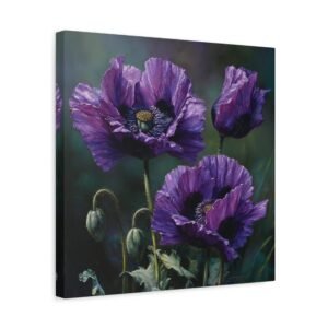 Découvrez la beauté inhabituelle des coquelicots violets avec ce tableau à l’huile saisissant. Peint dans un style botanique classique, il dépeint des fleurs en pleine floraison, leurs pétales profonds de violet et de lavande contrastant magnifiquement avec les tiges et les feuilles vert émeraude. Le tableau utilise une palette de couleurs riche en tons d’améthyste et de prune, avec un éclairage naturel doux qui crée de délicates ombres. Cette composition élégante met en valeur la beauté rare des coquelicots violets et donnera une touche d’originalité à votre décoration intérieure.