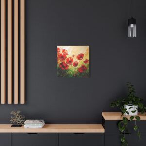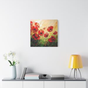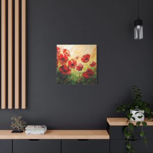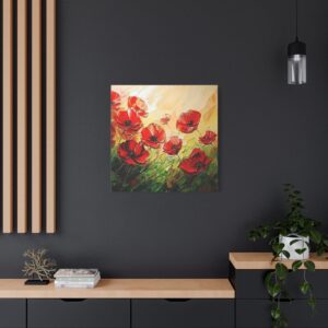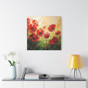 Pour sublimer ce tableau, privilégiez un mur clair qui fera ressortir les couleurs vibrantes des coquelicots. Associez-le à des éléments décoratifs aux tons naturels et des textiles aux textures douces pour créer un ensemble harmonieux qui évoque la sérénité d’une prairie en été.