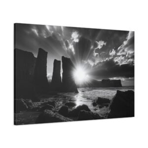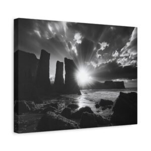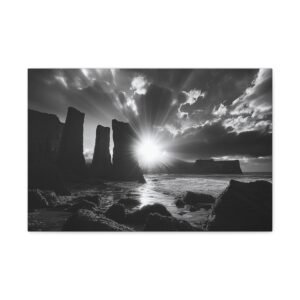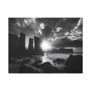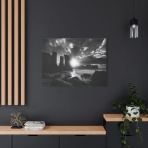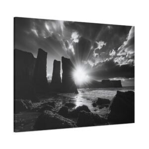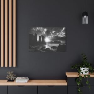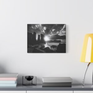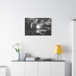 Les contrastes intenses entre ombres profondes et lumières éclatantes créent une atmosphère dramatique qui captive immédiatement le regard. Les rayons de lumière perçant les nuages dessinent une symphonie visuelle qui apporte une dimension théâtrale à votre intérieur.