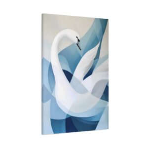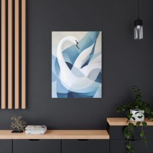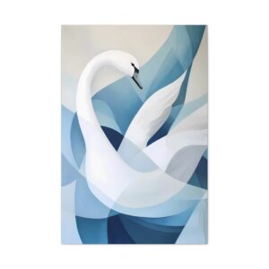 Laissez-vous séduire par cette interprétation abstraite majestueuse du cygne. Les courbes fluides et les formes géométriques créent une danse visuelle captivante, où la grâce naturelle de l’oiseau se fond dans une expression artistique contemporaine.