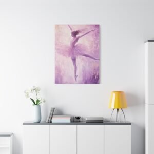 Inspiré du style impressionniste, ce tableau dévoile une ballerine éthérée dans une gracieuse pose d’arabesque. Les tons pastel doux de rose et de lavande se fondent harmonieusement, créant une atmosphère onirique qui invite à la contemplation. Les coups de pinceau délicats ajoutent du mouvement et de la texture, insufflant vie à cette scène enchanteresse.