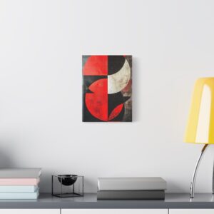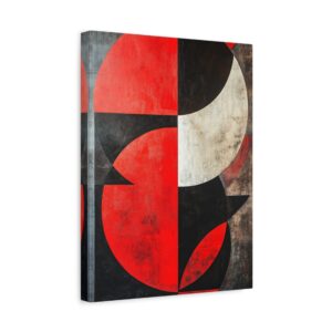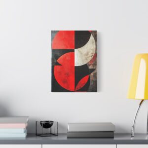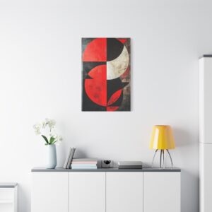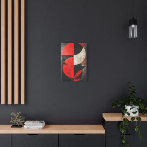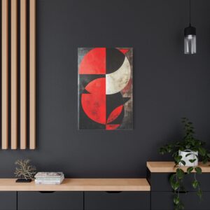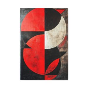 Laissez-vous captiver par cette composition géométrique saisissante où le rouge et le noir s’entremêlent avec audace. Les lignes fluides et les formes dynamiques créent un jeu visuel puissant qui transforme instantanément l’atmosphère de votre intérieur.