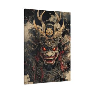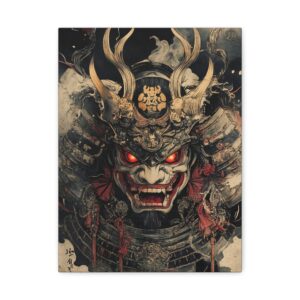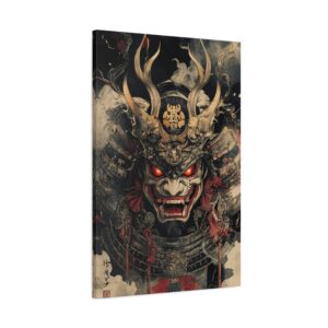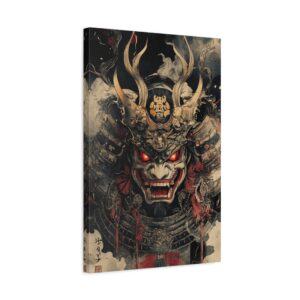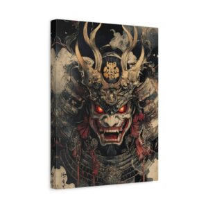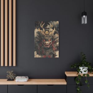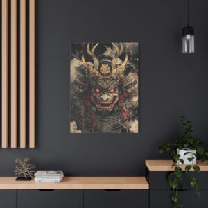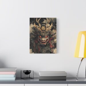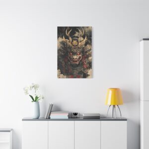 Les détails minutieux de l’armure de samouraï et le masque orné témoignent d’un art raffiné, inspiré des estampes ukiyo-e. L’expression féroce et les yeux luisants du démon captent immanquablement l’attention de vos invités, suscitant conversations et admiration.