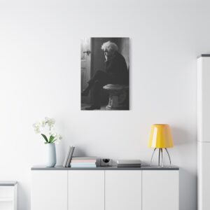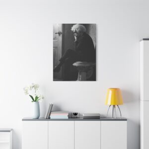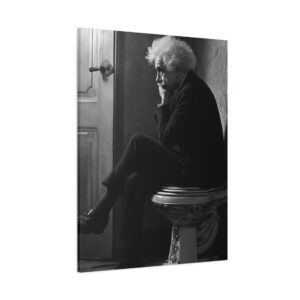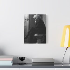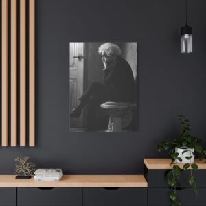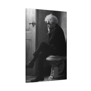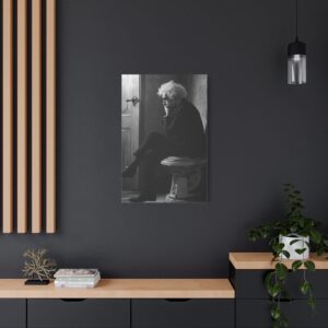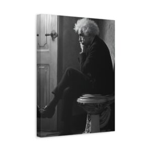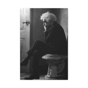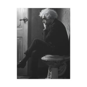 Donnez du caractère à vos toilettes avec ce cliché historique unique d’Albert Einstein dans une pose méditative inattendue. Le noir et blanc dramatique et les ombres marquées créent une atmosphère vintage des années 30, tandis que la texture grain de film ajoute une authenticité photographique saisissante.