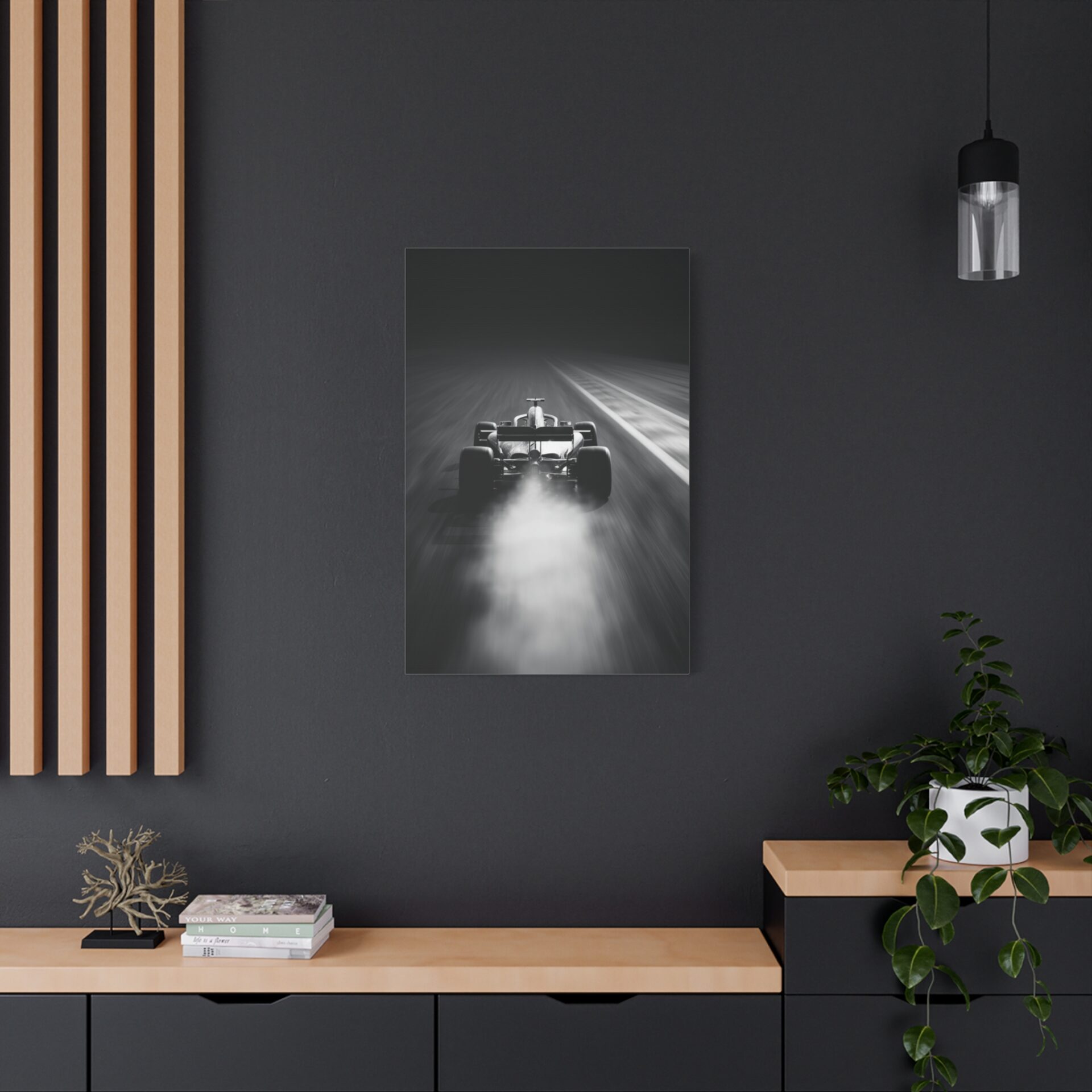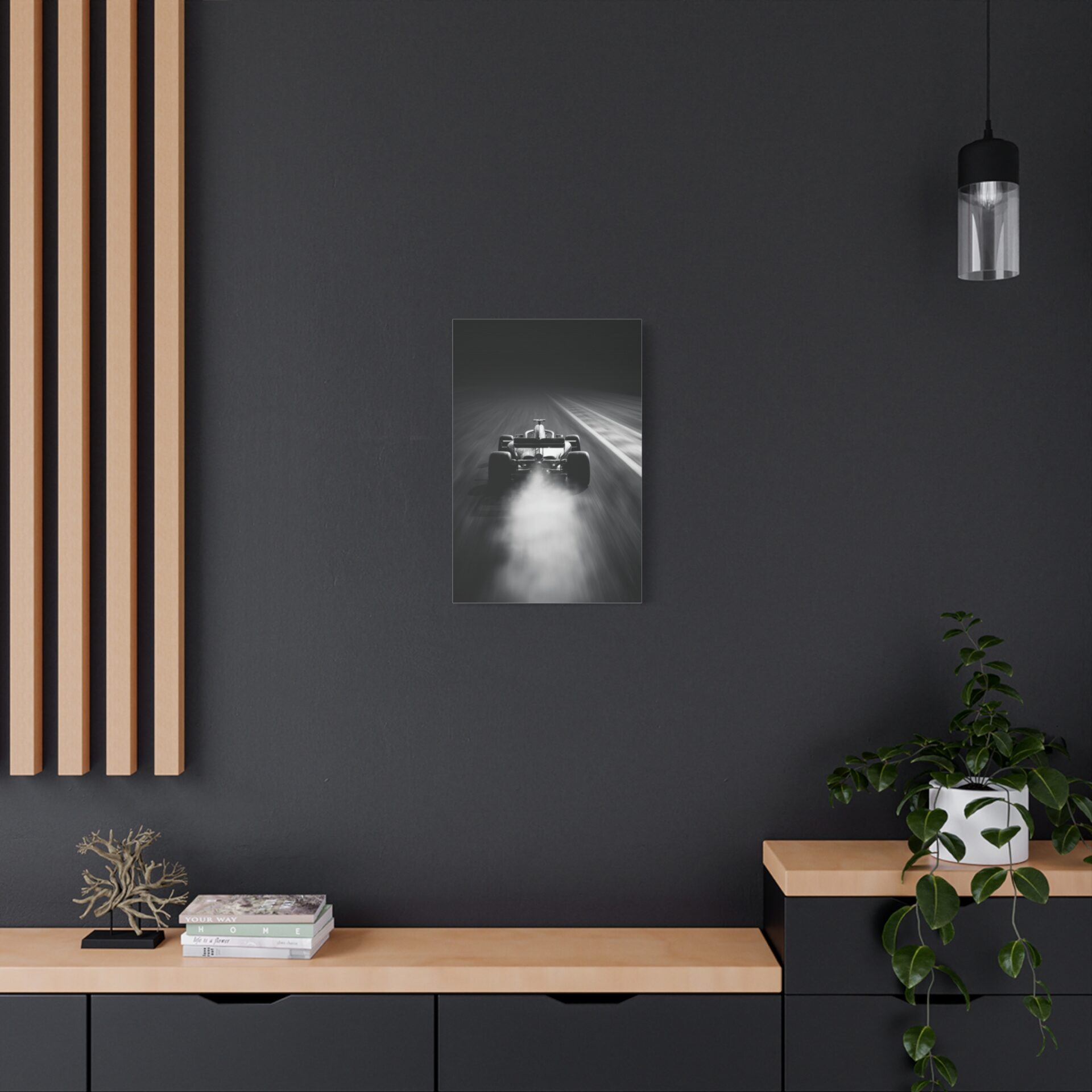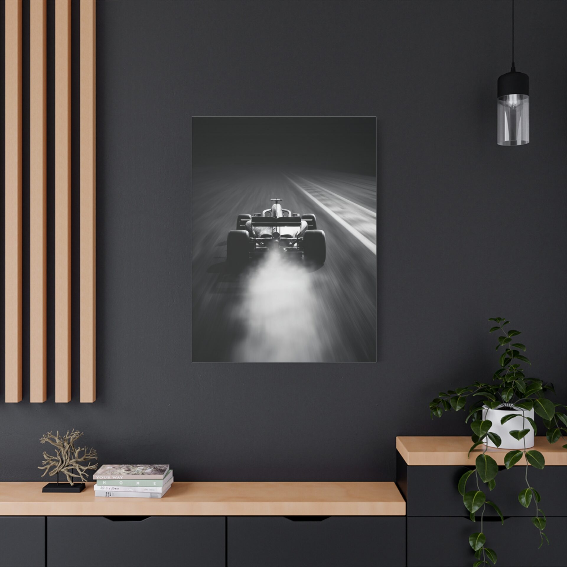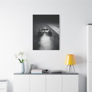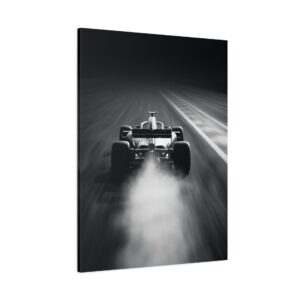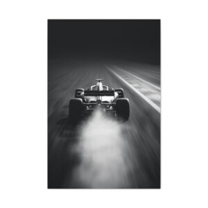 Plongez dans l’univers des courses de Formule 1 avec ce Tableau F1 Noir & Blanc. Cette photographie dramatique en noir et blanc capture une voiture de course F1 filant à toute vitesse sur le circuit. Le design aérodynamique élégant de la voiture avec sa grande aile arrière est mis en avant, tandis que le flou de mouvement illustre son incroyable vitesse. La fumée des pneus et les détails de la piste ajoutent une touche de réalisme à cette composition cinématographique. Sans logos ni marques visibles, ce tableau représente l’essence pure du sport automobile.