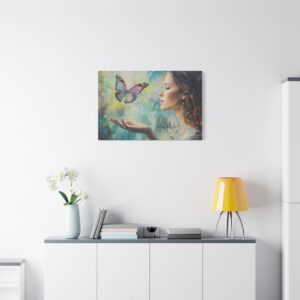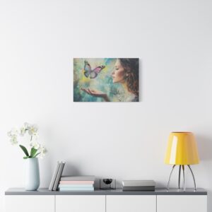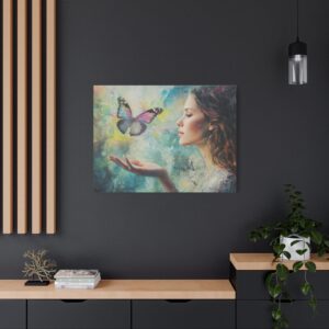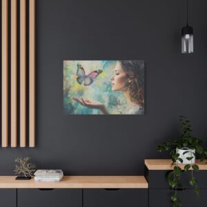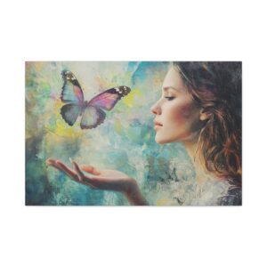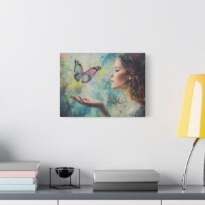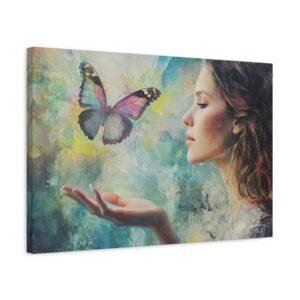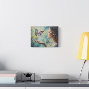 Plongez dans un univers onirique avec cette œuvre d’art contemporaine envoûtante. Le portrait saisissant d’une femme, main tendue vers l’infini, libère un papillon dans une chorégraphie picturale unique. Les coups de pinceau impressionnistes et les effets aquarelles créent une atmosphère de rêve captivante.