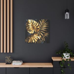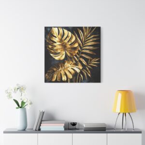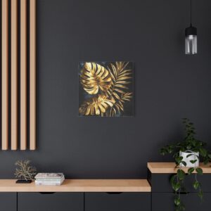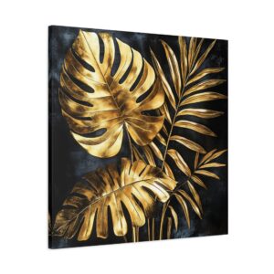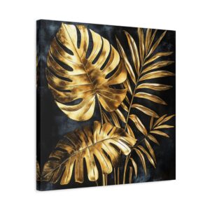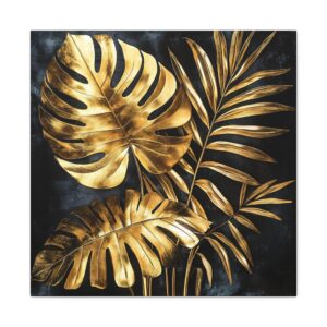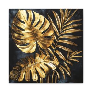 Sublimez votre intérieur avec cette œuvre d’art végétale somptueuse alliant l’exotisme tropical à l’élégance de l’or. Sur un fond noir velours intense, les feuilles de monstera et de palmier fusionnent dans une composition art déco spectaculaire.