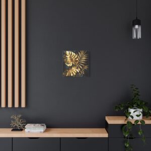 Les veinures dorées métalliques captent et réfléchissent la lumière, créant un jeu d’ombres sophistiqué qui anime votre espace. Le format carré parfait de cette pièce en fait un choix idéal pour une disposition en solo ou en composition murale contemporaine.