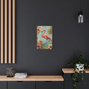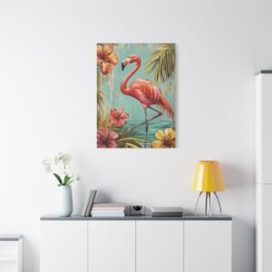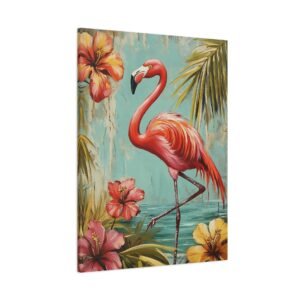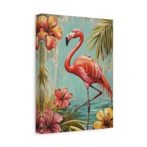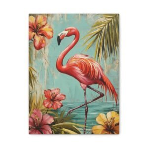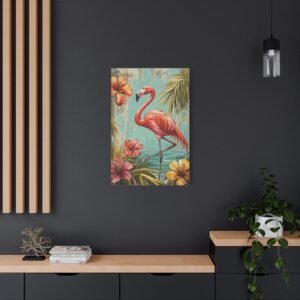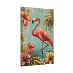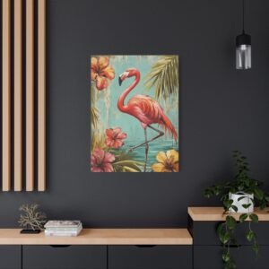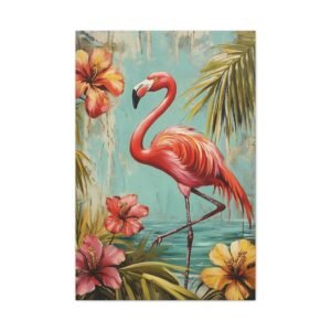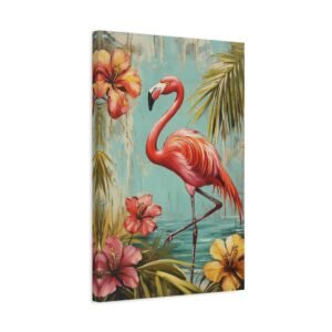 Immergez-vous dans une ambiance tropicale luxuriante avec ce tableau enchanteur où le flamant rose se dévoile dans toute sa splendeur. Les tons vibrants de rose se marient harmonieusement avec un arrière-plan turquoise évocateur, créant une atmosphère paradisiaque instantanée dans votre espace.