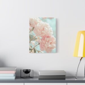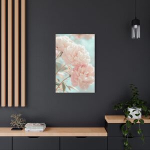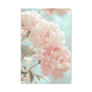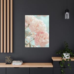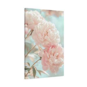 Pour sublimer cette toile, privilégiez un mur aux tons neutres qui mettra en valeur les nuances délicates des pivoines. Un éclairage doux révélera la richesse des textures et la profondeur de la composition. Associez-le à des textiles soyeux et des accessoires dorés pour une ambiance boudoir raffinée.