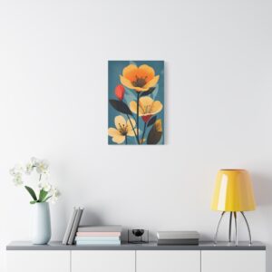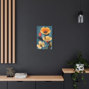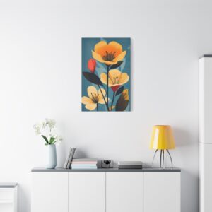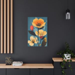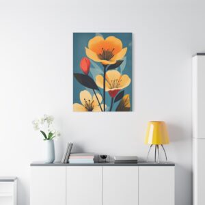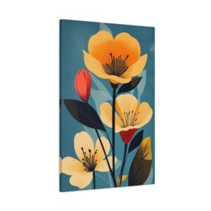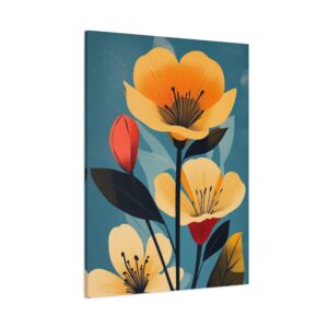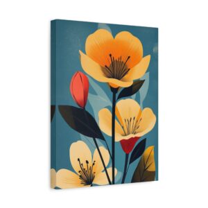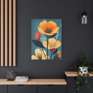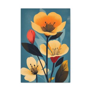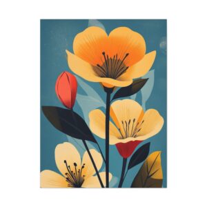 Laissez-vous séduire par cette composition florale Art déco qui capture toute l’élégance des années 50. Les lignes épurées et les formes audacieuses s’entremêlent dans une palette de couleurs rétro qui insuffle une touche de nostalgie raffinée à votre intérieur.