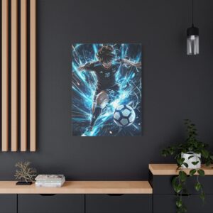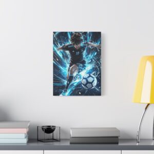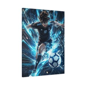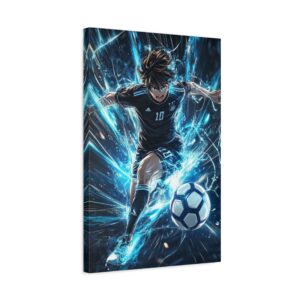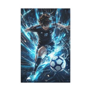 Offrez à votre jeune footballeur passionné ce tableau dynamique style manga où l’action et l’émotion fusionnent. Les effets lumineux dramatiques et l’aura d’énergie bleue créent une ambiance électrisante qui captivera instantanément tous les regards.