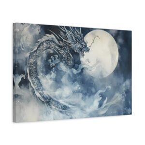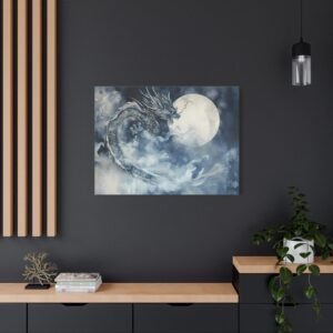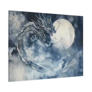 Transformez votre chambre en un sanctuaire de sérénité avec ce tableau époustouflant qui capture l’essence mystique de l’art japonais. Le dragon, symbole de puissance et de sagesse, serpente élégamment dans un paysage nocturne baigné de lumière lunaire, créant une atmosphère à la fois apaisante et fascinante.
