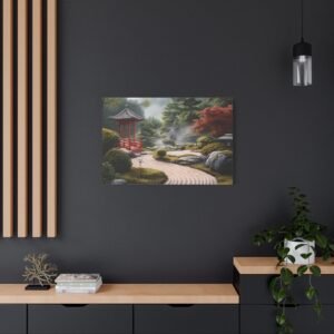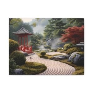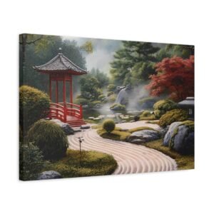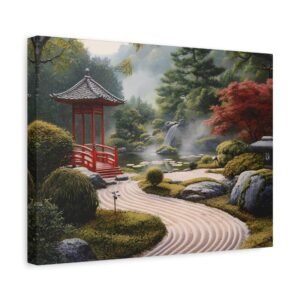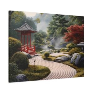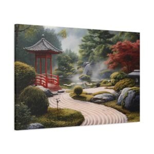 Offrez-vous une fenêtre sur la sérénité japonaise avec ce tableau qui capture l’essence même des jardins zen. Chaque détail de cette composition révèle une harmonie parfaite entre la nature et la méditation, transformant votre espace de vie en un véritable sanctuaire de tranquillité.
