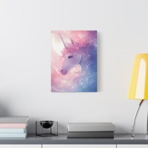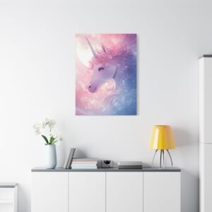 Cette œuvre devient le point central idéal d’une décoration de chambre féérique. Les tons pastels doux et lumineux s’harmonisent parfaitement avec un mobilier blanc ou rose poudré. Pour un effet encore plus magique, associez ce tableau à des accessoires brillants et des textiles vaporeux comme des voilages ou des coussins irisés.